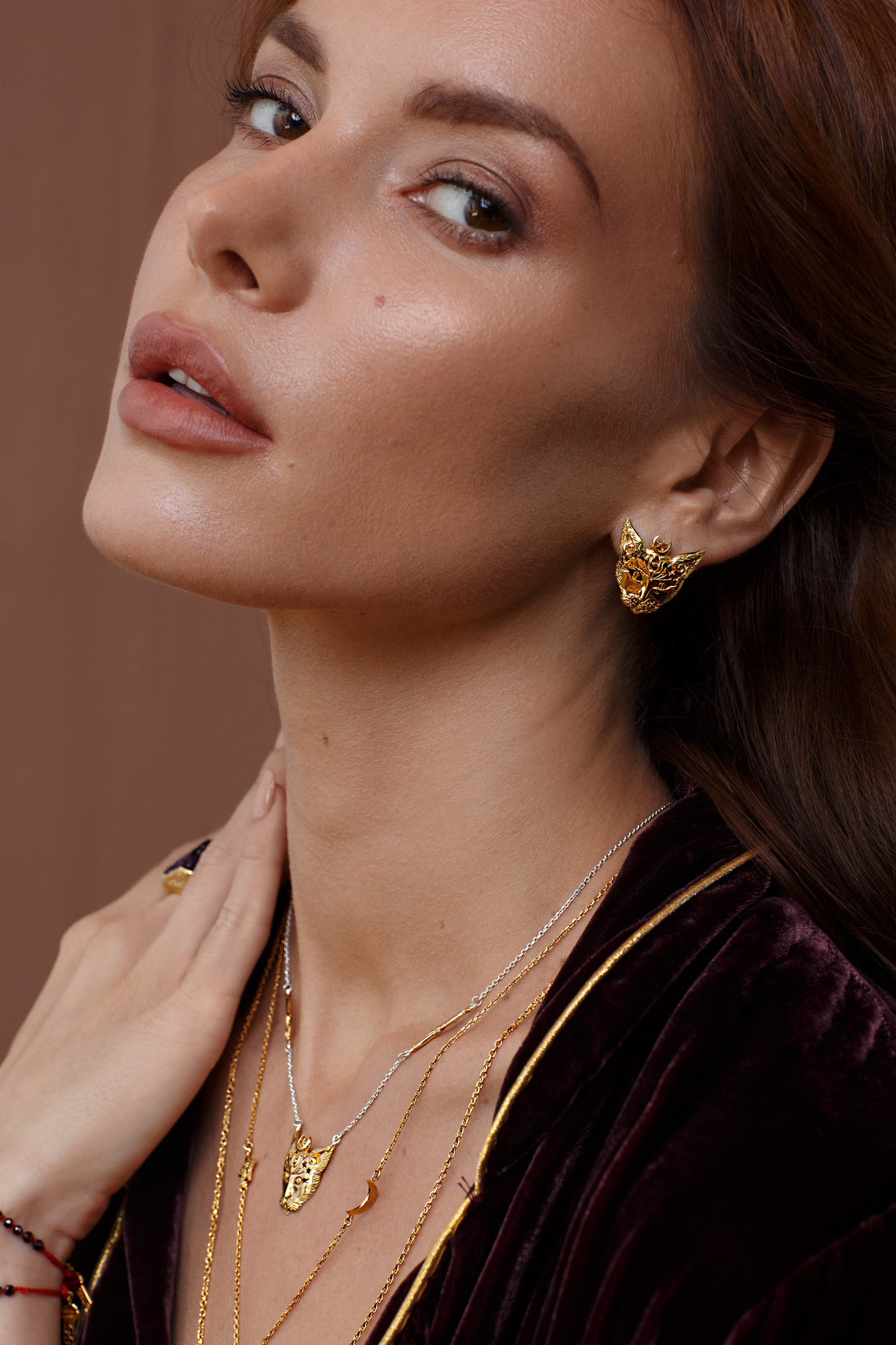 Чарующие серьги-гвоздики в позолоченном покрытии дадут вам почувствовать себя настоящей богиней. Бастет – египетская богиня-кошка, которая олицетворяет мощь интуитивной связи женщины с творящей силой и ее умение управлять своими телом, разумом и эмоциями. В Египте существовали храмы Бастет, ее культ славился своей инопланетной красотой и моложавостью, грацией и многочисленными талантами, знаниями. Древние люди верили, что они – наследники инопланетной цивилизации, которые принесли на землю тайные знания и способны открыть путь к счастью, любви и красоте.